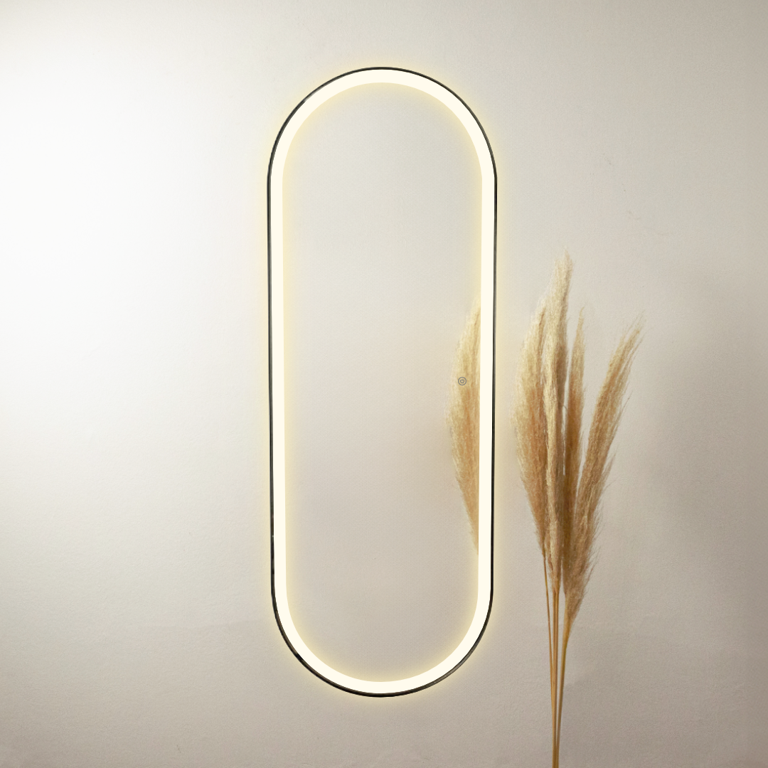 Espelho oval Tijuca 1,70x60 cm - Preto LED FRONTAL